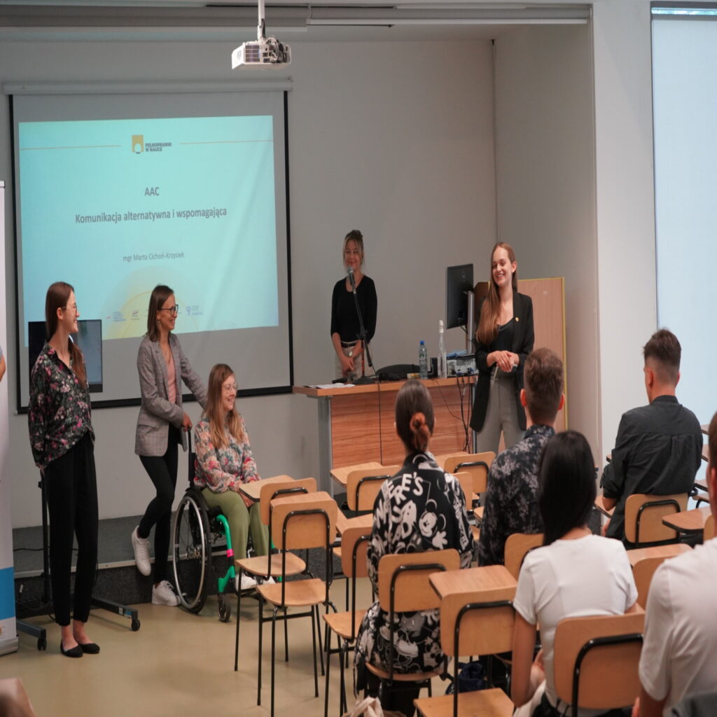 Warsztat „AAC – Komunikacja alternatywna i wspomagająca” został przeprowadzony w związku z cyklem warsztatów zatytułowanym „Zrozumieć osoby z niepełnosprawnościami”. Spotkanie odbyło się 27 września 2024 r. w Uniwersytecie Ignatianum w Krakowie.