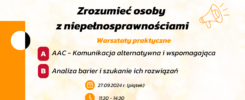 📣Serdecznie zachęcamy do udziału w cyklu warsztatowym w ramach wydarzenia „Zrozumieć osoby z niepełnosprawnościami” czyli warsztaty praktyczne, podczas których uczestnicy będą mogli poznać w praktyce ograniczenia i bariery, z którymi na co dzień stykają się osoby z niepełnosprawnościami utrudniające aktywności w życiu akademickim, społecznym i samorządowym. Warsztaty zostały przygotowane we współpracy z ekspertami w zakresie funkcjonowania osób z niepełnosprawnościami.